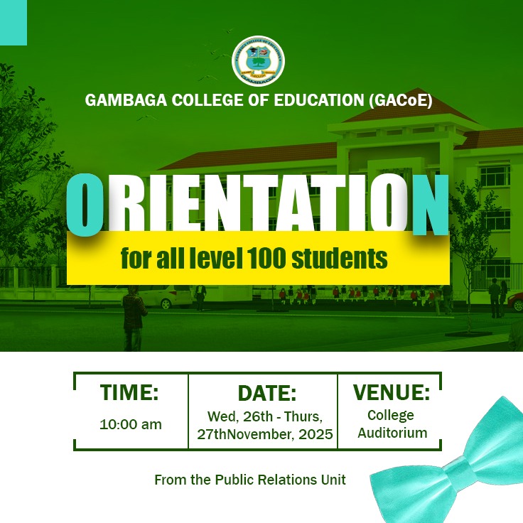 5th Congregation The 5th Congregation of the Gambaga College of Education (GACoE) is scheduled for December 18, 2025. This graduation ceremony celebrates the Class of 2024, marking a significant milestone for the graduating students. All members of the college community, alumni, and invited guests are cordially invited to attend the event. Orientation of Freshers for […]